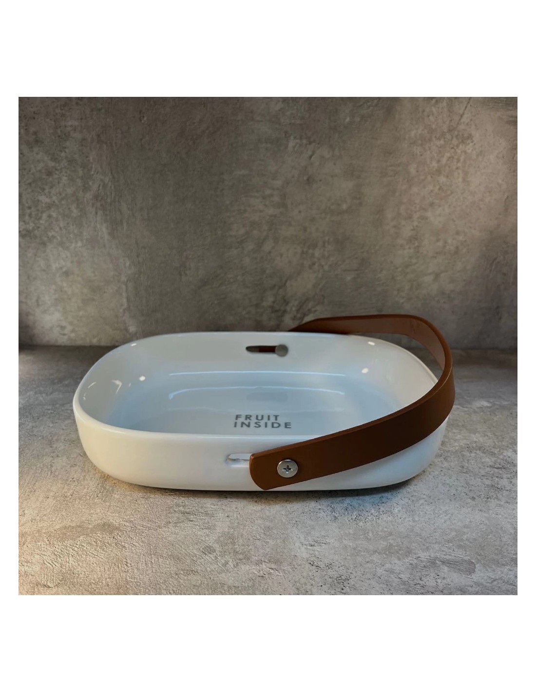 El equilibrio perfecto entre cerámica y cuero. Elevá la presentación de tu mesa con esta bandeja rectangular de diseño exclusivo. Su cuerpo de cerámica premium, complementado con una delicada manija de cuero, fusiona la elegancia clásica con la funcionalidad moderna. Es la pieza ideal para quienes buscan distinción en los pequeños detalles.