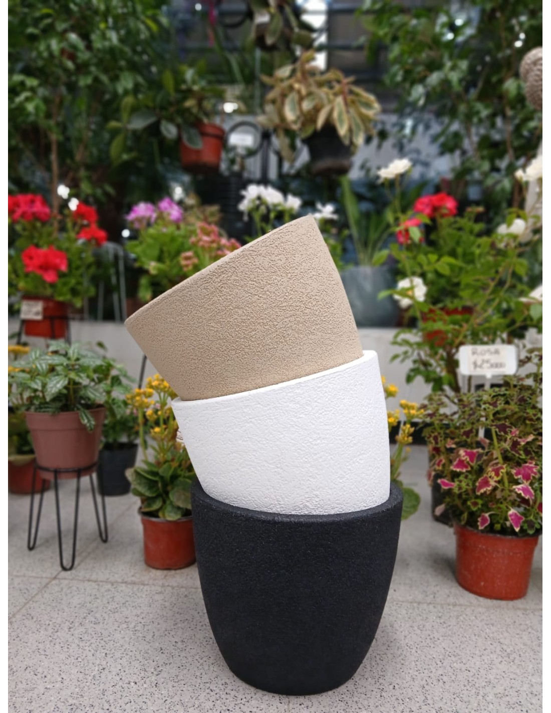 Plástico, rotomoldeado macetas.